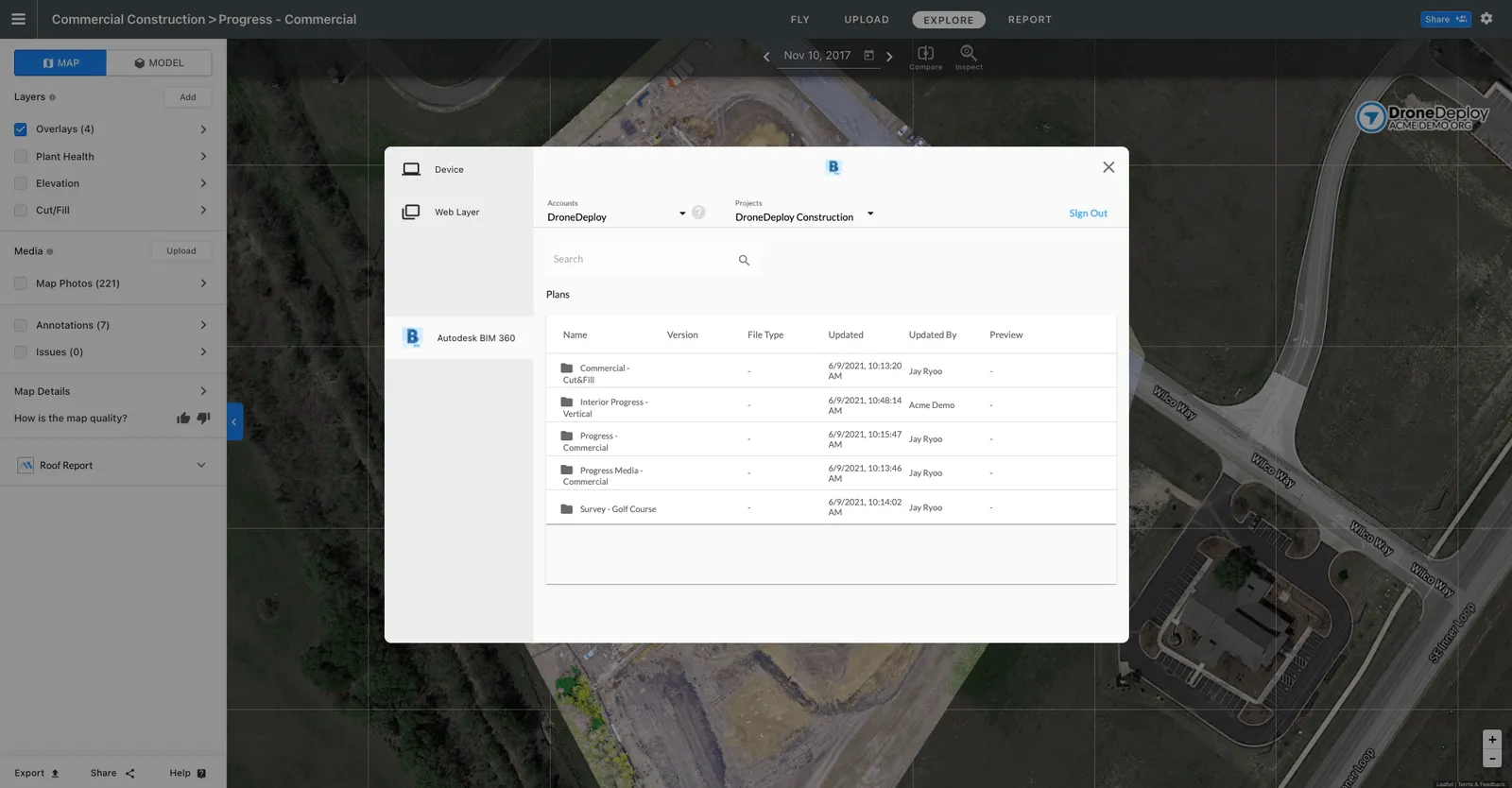 Push high-resolution aerial maps and mobile images from DroneDeploy to Autodesk Docs and BIM 360 “Project Files” for progress documentation